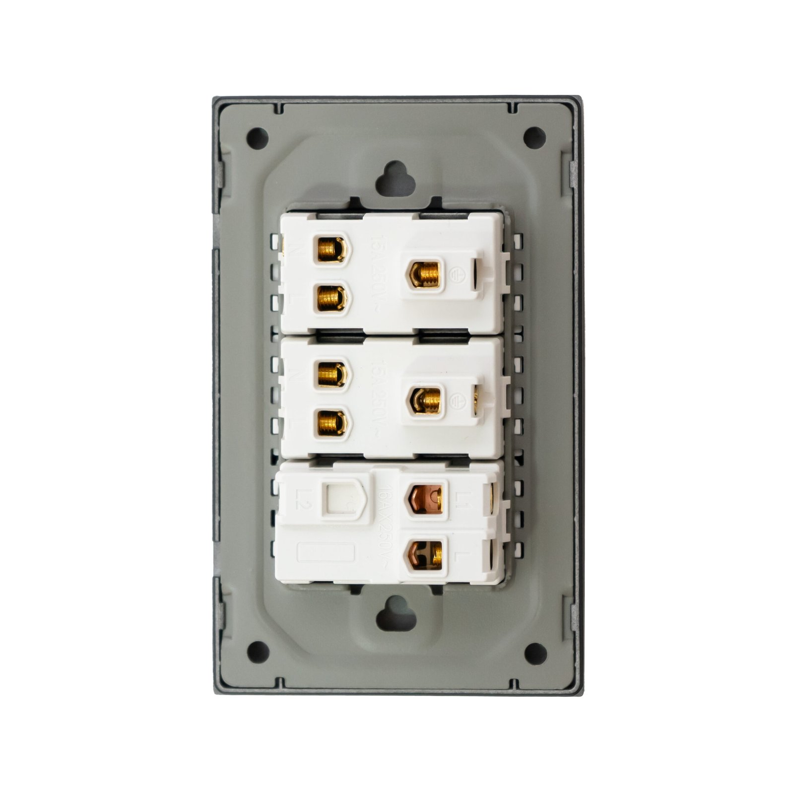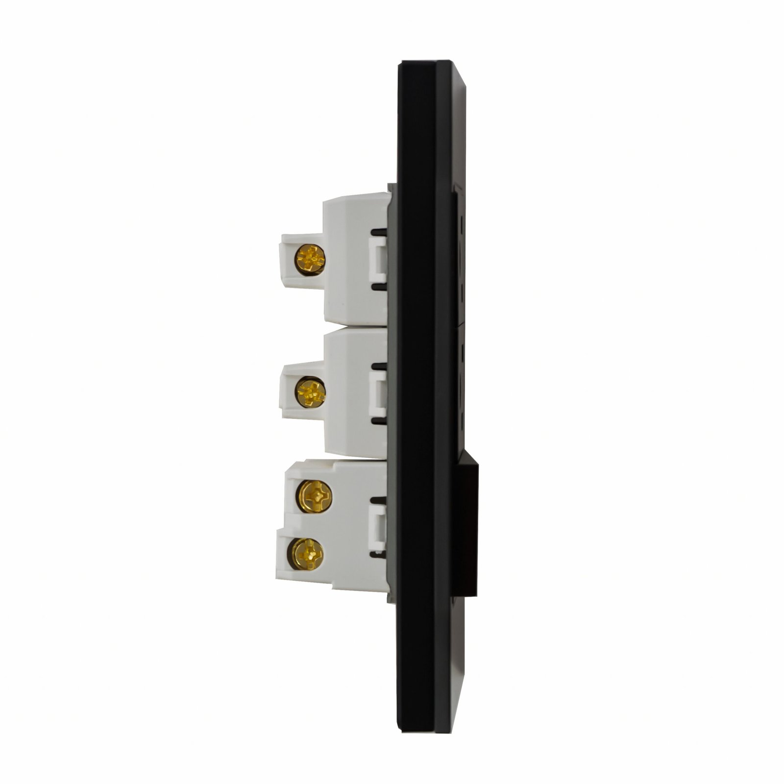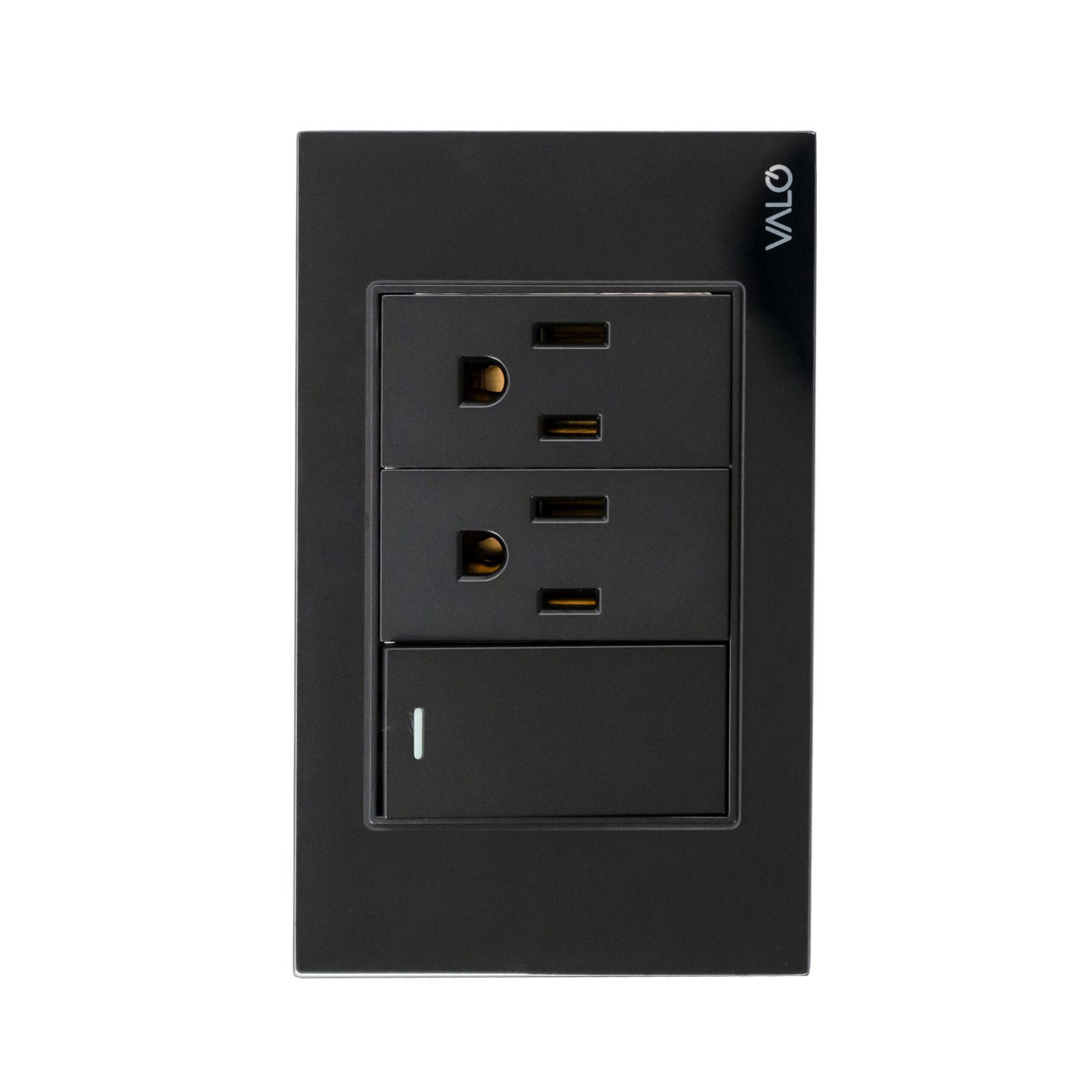 PLACA CON 1 INTERRUPTOR DE ESCALERA Y 2 CONTACTOS DE 1 MODULO COLOR NEGRO
