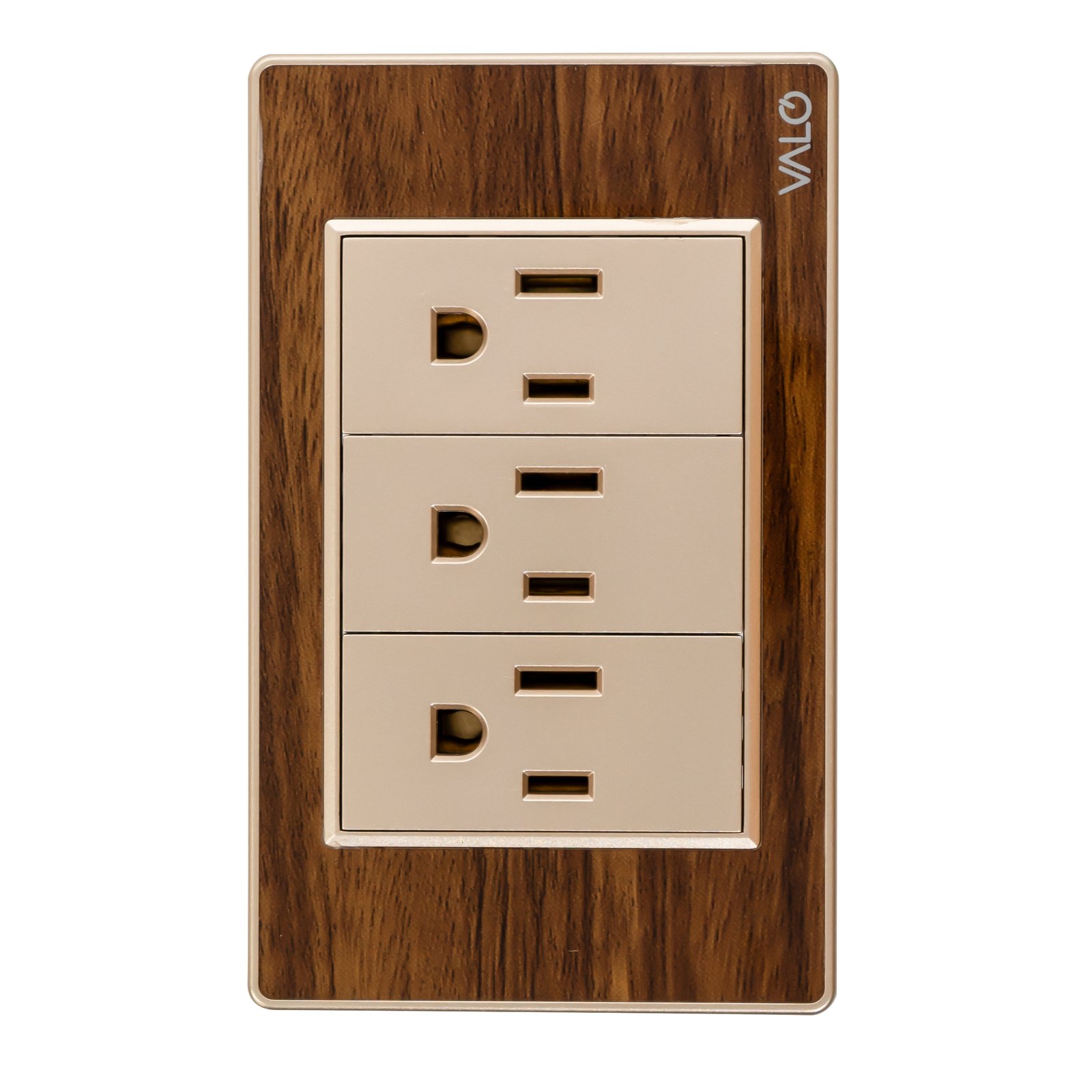 PLACA CON 3 CONTACTOS SENCILLOS DE 1 MODULO COLOR MADERA